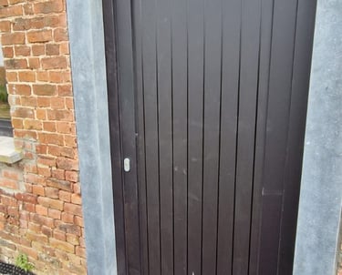 Pose d'une porte d'entrée contemporaine en PVC Salamander 82 mm avec vitrage décoratif. Lignes épurées, isolation renforcée et sécurité multipoint pour une entrée à la fois accueillante et performante.